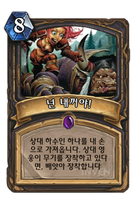 | 효과 | 상대 하수인 하나를 내 손으로 가져옵니다. 상대 영웅이 무기를 장착하고 있다면, 빼앗아 장착합니다 | ||