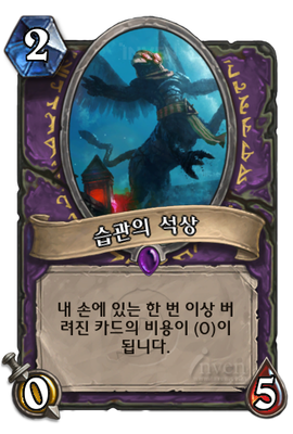| 효과 | 내 손에 있는 한 번 이상 버려진 카드의 비용이 (0)이 됩니다. | ||