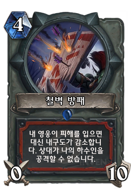 | 효과 | 내 영웅이 피해를 입으면 대신 내구도가 감소합니다. 상대가 나의 하수인을 공격할 수 없습니다. | ||