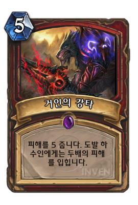 | 효과 | 피해를 5 줍니다. 도발 하수인에게는 두배의 피해를 입힙니다. | ||