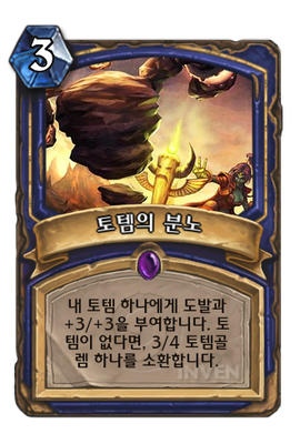 | 효과 | 내 토템 하나에게 도발과 +3/+3을 부여합니다. 토템이 없다면, 3/4 토템골렘 하나를 소환합니다. | ||