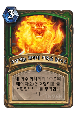 | 효과 | 내 야수 하나에게 '죽음의 메아리:2/2 호랑이를 둘 소환합니다' 를 부여합니다 | ||