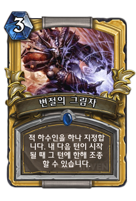 | 효과 | 적 하수인을 하나 지정합니다. 내 다음 턴이 시작될 때 그 턴에 한해 조종할 수 있습니다. | ||