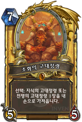 | 효과 | 선택: 지식의 고대정령 또는 전쟁의 고대정령 1장을 내 손으로 가져옵니다. | ||