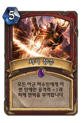 | 효과 | 모든 아군 하수인에게 이번 턴에만 공격력 +1과 피해 면역을 부여합니다. | ||