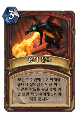 | 효과 | 모든 하수인에게 2 피해를 줍니다 살아남은 아군 하수인만큼 카드를 뽑고 3명 이상 살면 적 영웅에게 5데미지를 줍니다 | ||