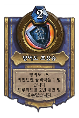 | 효과 | 방어도 +5 이번턴엔 공격력을 1 얻습니다 트루하트를 2번 내면 얻을수있습니다 |