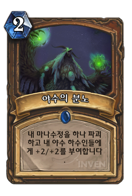 | 효과 | 내 마나수정을 하나 파괴하고 내 야수 하수인들에게 +2/+2를 부여합니다. | ||