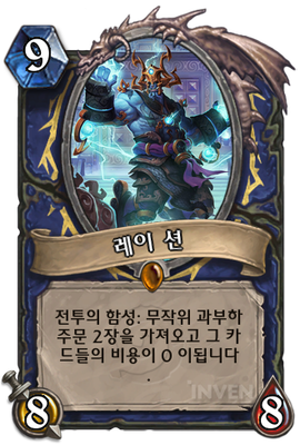 | 효과 | 전투의 함성: 무작위 과부하 주문 2장을 가져오고 그 카드들의 비용이 0 이됩니다. | ||
