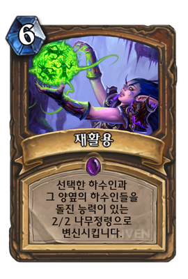 | 효과 | 선택한 하수인과 그 양옆의 하수인들을 돌진 능력이 있는 2/2 나무정령으로 변신시킵니다. |
