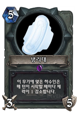 | 효과 | 이 무기에 맞은 하수인은 매 턴이 시작할 때마다 체력이 1 감소합니다. | ||