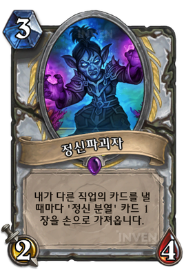 | 효과 | 내가 다른 직업의 카드를 낼 때마다 '정신 분열' 카드 1장을 손으로 가져옵니다. | ||