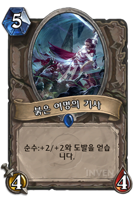 | 부연 설명 | 순수(Purity):이번 턴에 같은 종류의 카드만 냈을 경우 턴이 종료될 때 효과가 발동합니다. 붉은 여명의 기사가 가진 순수 효과를 터트리려면 하수인만 냈어야 합니다.(이번 턴에) |