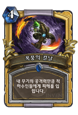| 효과 | 내 무기의 공격력만큼 적 하수인들에게 피해를 입힙니다. | ||