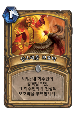 | 효과 | 비밀: 내 하수인이 공격받으면, 그 하수인에게 천상의 보호막을 부여합니다. |