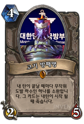 | 효과 | 내 턴이 끝날 때마다 무작위 도발 하수인 하나를 소환합니다. 그 카드는 내턴이 시작 될 때 죽습니다. | ||