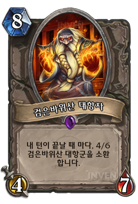 | 효과 | 내 턴이 끝날 때 마다, 4/6 검은바위산 대항군을 소환합니다. | ||