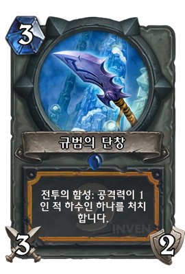 | 효과 | 전투의 함성: 공격력이 1인 적 하수인 하나를 처치합니다. | ||