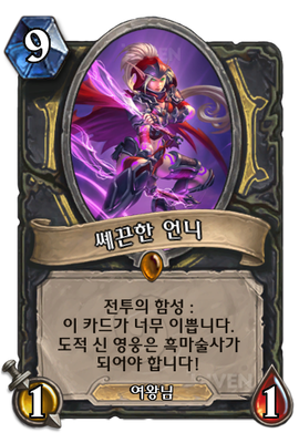 | 효과 | 전투의 함성 : 이 카드가 너무 이쁩니다. 도적 신 영웅은 흑마술사가 되어야 합니다! |