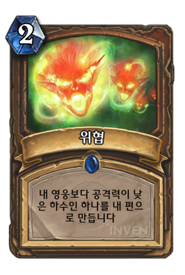 | 효과 | 내 영웅보다 공격력이 낮은 하수인 하나를 내 편으로 만듭니다 | ||