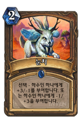 | 효과 | 선택 - 하수인 하나에게 +3/-1를 부여합니다. 또는 하수인 하나에게 -1/+3을 부여합니다. | ||