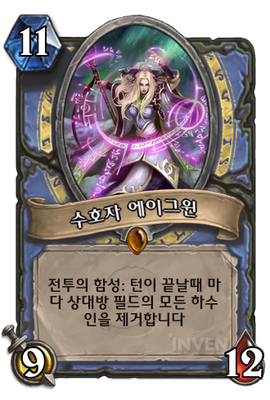 | 효과 | 전투의 함성: 턴이 끝날때 마다 상대방 필드의 모든 하수인을 제거합니다 | ||