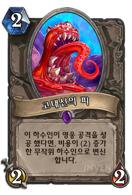 | 효과 | 이 하수인이 영웅 공격을 성공 했다면, 비용이 (2) 증가한 무작위 하수인으로 변신합니다. | ||