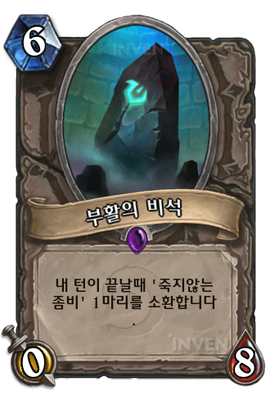 | 효과 | 내 턴이 끝날때 '죽지않는 좀비' 1마리를 소환합니다. | ||