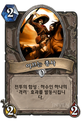 | 효과 | 전투의 함성 : 하수인 하나의 '격려' 효과를 발동시킵니다. | ||