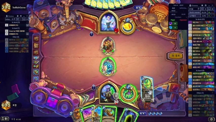 냥꾼: 비밀 안빼고 한턴 기다려보는게 답일때가 꽤 많음. 이를테면 5턴에 서리늑대군주9/9로 내고 공격해서 폭덫에 신병들 다 죽은 상황. 다음턴에 상대가 치명적인사격 쏩니다. 그래서 한턴 쉬고 신병이랑 서리늑대군주를 섞어주는거임