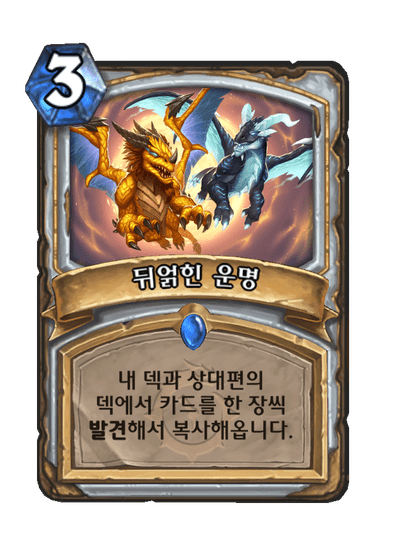 번창대신 운명을 넣은 이유는 후반부까지 끌고 가야 하는데 번창은 주문만 되며 덱에서 뽑는거라 후반까지 버티기 힘든것 때문에 교체