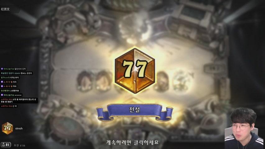 수정을 거듭하여 완성된 과부하 술사입니다. 23승 8패로 전설 달성했습니다.