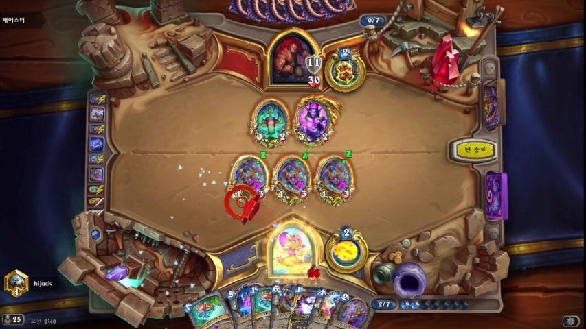 어둠사제와 정배로 상대의 하수인을 뺏어와 상대합니다. 상대의 전설을 대비하여 정배는 꼭 꼭 아껴두는게 핵심.